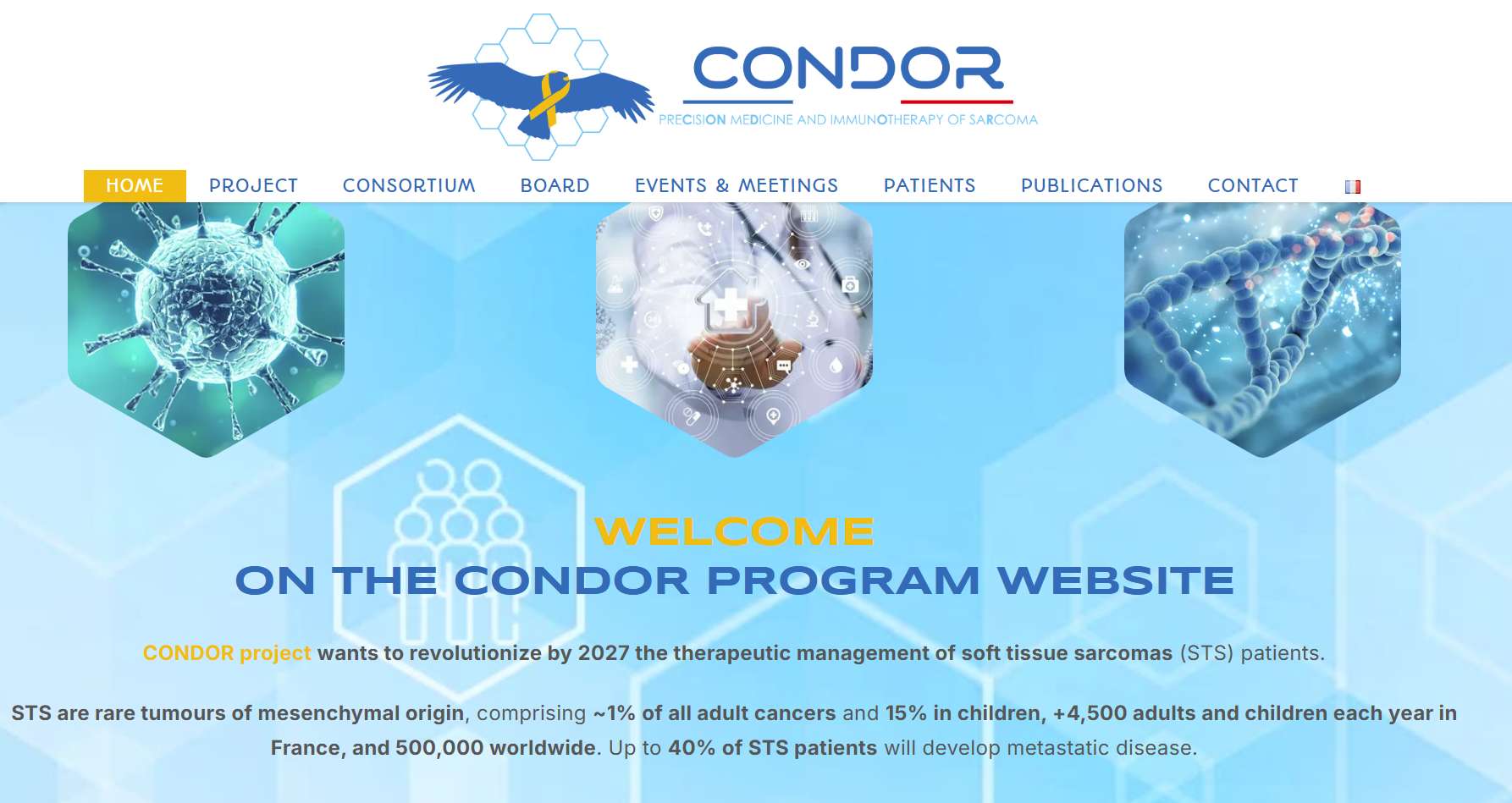 The CONDOR consortium is a unique initiative enabled by the highly structured sarcoma care organization in France, the national sarcoma database, and the dynamism of the French Sarcoma Group. With unparalleled patient access and the world’s largest portfolio of sarcoma immunotherapy trials, CONDOR integrates biological resources, clinical expertise, and industry collaboration at scale. Its mission is to deliver four key outputs: (i) a comprehensive sarcoma immune atlas, (ii) a predictive digital pathology tool, (iii) a peripheral plasma-based signature to guide patient selection, and (iv) early-phase trials on novel targets. This combination positions CONDOR as the most advanced global effort to transform the treatment landscape of sarcomas.